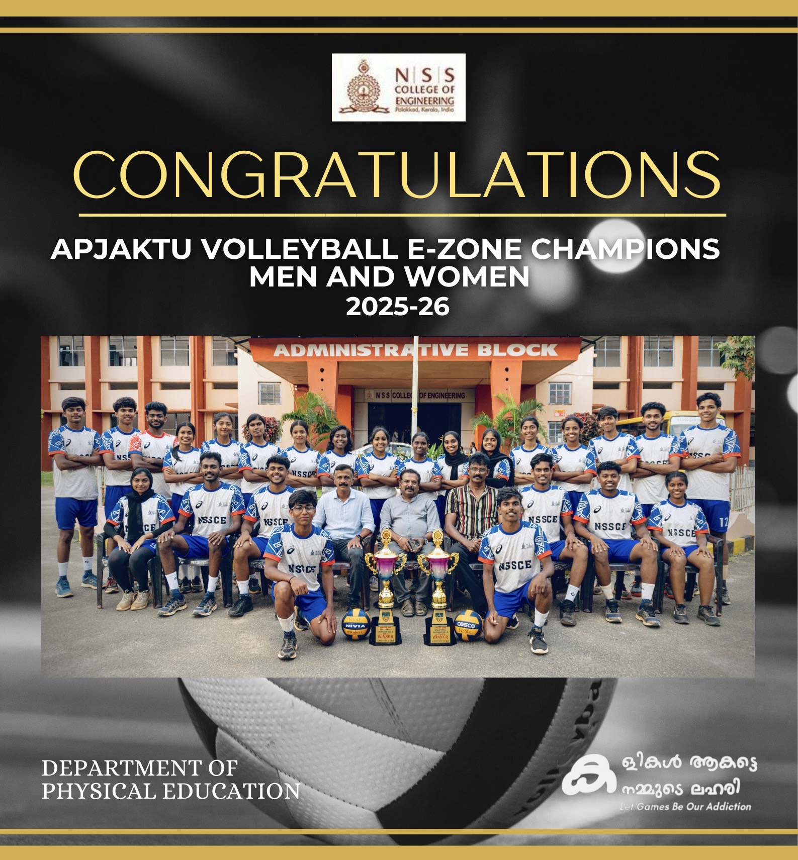 The department of Physical Education has been functioning since 1960, the year when the NSS College of Engineering was established and we are marching towards its goal of excellence. Department of Physical Education is catering the needs of all teaching, non teaching staff and student community in particular. The department has many meritorious achievements in the past and it has been maintaining the same also. Many glittering stars have been trained to flutter their wings from this institution of 50 years of history.